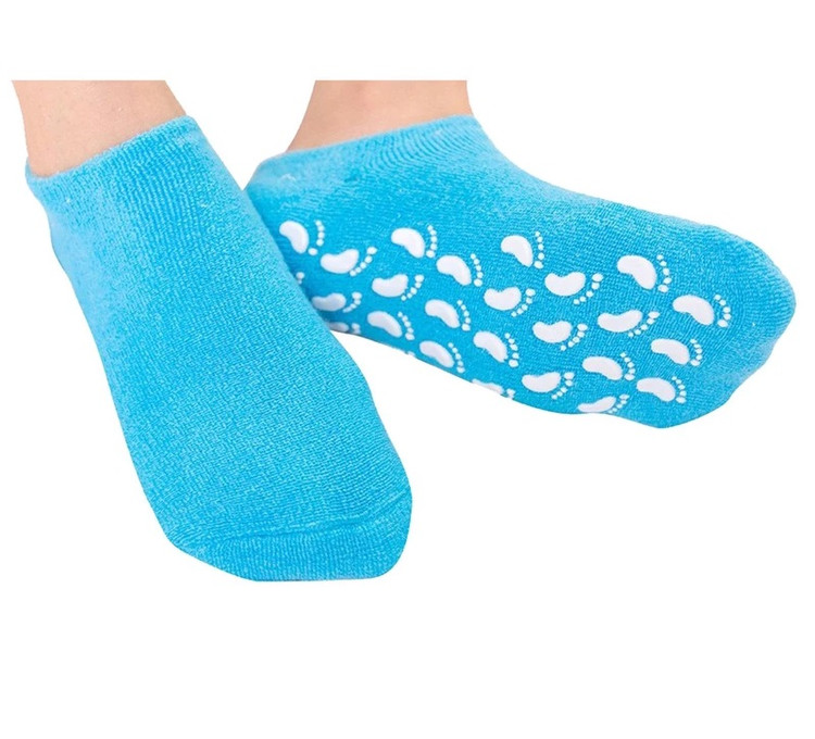 جوراب ترک پا سیلیکونی بهترین جوراب نرم مرطوب کننده برای پوست های سخت، خشک، زبر، ترک خورده، انگشتان و پاشنه پاها می باشد. استفاده از جوراب پاپوش طبی می تواند به عنوان درمان آبگرم در خانه باشد و دیگر نیازی به مراجعه به سالن های زیبایی گران قیمت ندارید. این جوراب پاپوش تهیه شده با روکش ژل فرموله شده ویژه غنی از ویتامین E و روغن های معدنی (روغن جوجوبا، روغن هسته انگور، روغن زیتون و غیره) می باشد.