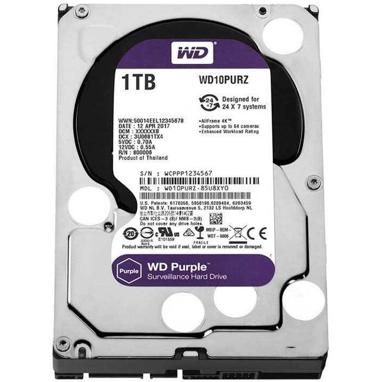 هارد بنفش وسترن دیجیتال با هدف ذخیره سازی داده ها به صورت مداوم طراحی شده و جهت استفاده در مراکز مانیتورینگ و ذخیره سازی داده های دوربین های مدار بسته کاربرد دارد. این مدل از سری هارد های بنفش Western Digital از ظرفیتی معادل ۱ ترابایت بهره می برد تا امکان ذخیره سازی داده های حجیم برای کاربران وجود داشته باشد. هارد ۱ ترابایت اینترنال Western Digital مدل Purple از هد 3.5 اینچی با قابلیت چرخش 5400 دور در دقیقه با سرعت خواندن و نوشتن اطلاعات تا حداکثر 110 مگابایت بر ثانیه بهره می برد، که میزان نویز حاصل از چرخش هد این دستگاه در حالت Seek به حداکثر 24 دسی بل می رسد که از صدای بسیار کمی برخودار است.