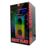 اسپیکر بلوتوثی قابل حمل مدل KTS-1710 یک محصول با ابعاد 15x29x13 سانتی متر و وزن 1200 گرم می باشد که باتوجه به کیفیت مناسبی که دارد از قیمت معقولی برخوردار است.این اسپیکر دستی و قابل حمل دارای 2 باند 34 اینچی می باشد که صدای خروجی بسیار خوبی دارد. بدنه این محصول از جنس پلاستیک می باشد که در نمای بالا یک صفحه کلید شامل دکمه های توقف، پخش، قبلی و بعدی و … با دسترسی بهتر برای کنترل آسان در نظر گرفته شده است. همچنین یک فرورفتگی برای قرارگیری دست در آن تعبیه شده است. از مزیت های این دستگاه وجود نورپردازی RGB می باشد که با LED های خوش رنگ و با کیفیت، نوردهی زیبایی را انجام می دهد و می توان در مواقع دلخواه آن ها را تنظیم کرده و خاموش و روشن نمود. اسپیکر بلوتوثی قابل حمل مدل KTS-1710 دارای یک باطری لیتیومی از نوع شارژی با ظرفیت 1800 میلی آمپر می باشد که برای استفاده در طبیعت و خارج از منزل کاربردی است.