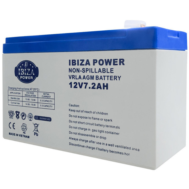 ظرفیت باتری 7.2 آمپر ساعت و ولتاژ خروجی ۱۲ ولت، با مقاومت داخلی پایین